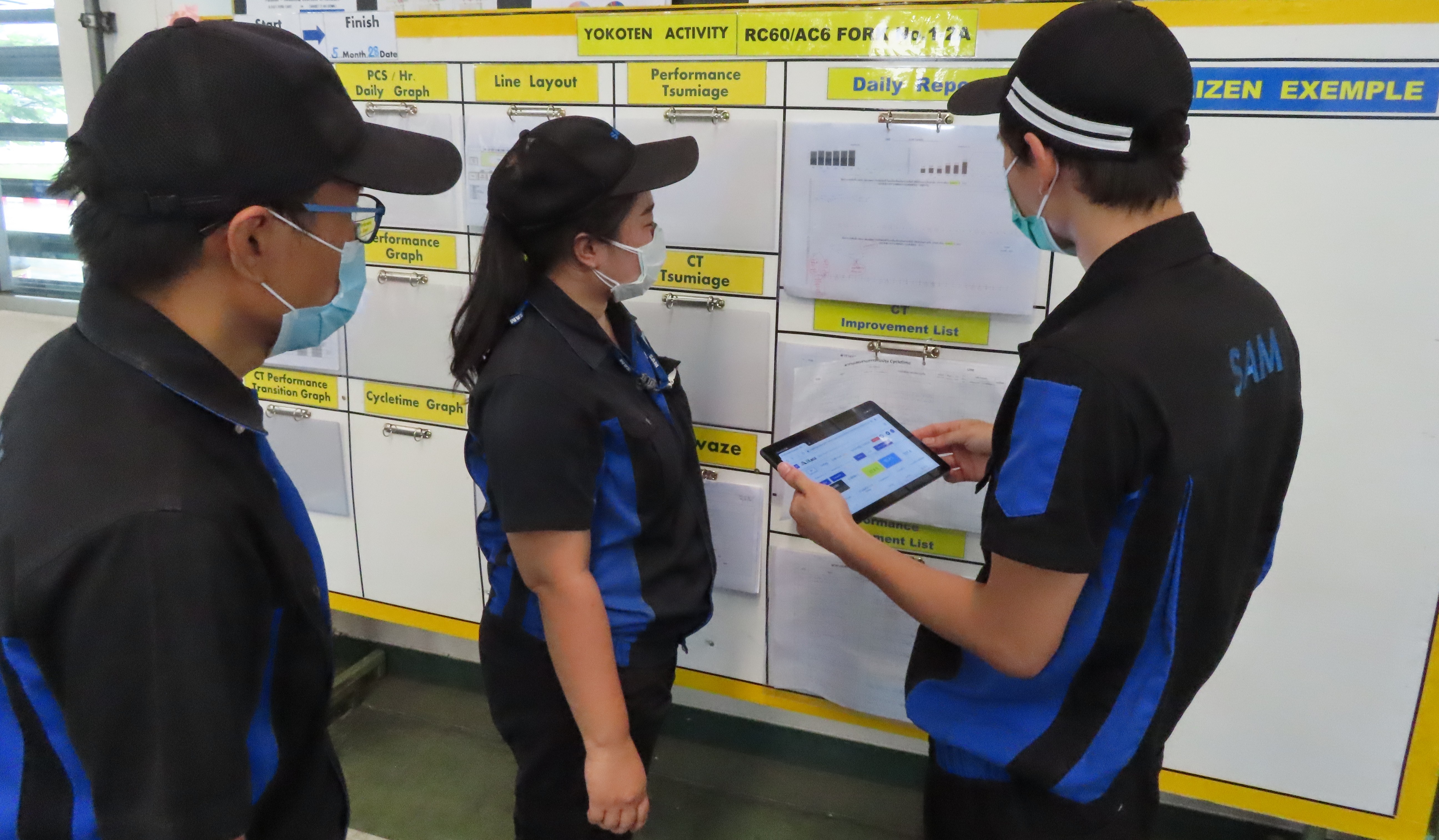 By using iXacs, it allows us to visualize the operational status and CO2 emissions of the production line. It's not just a representation of data, but also a depiction of the "waste" in the production line, leading directly to improvement activities.